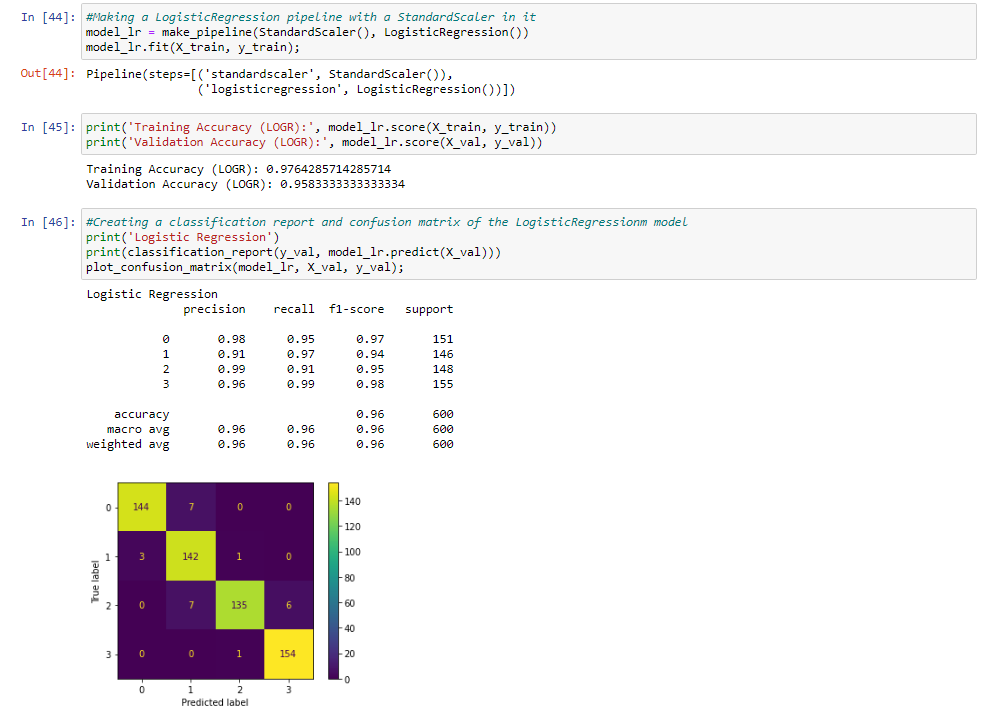 For the first model, I used a standard scaler to scale are data variance and logistic regression. We then fit the X_train and Y_train to the first model. When you look at the accuracy score for training and validation in the model we can see a lot of overfitting. This can be from data leaking in the data frame. I also looked at a classification report and plotted a confusion matrix.